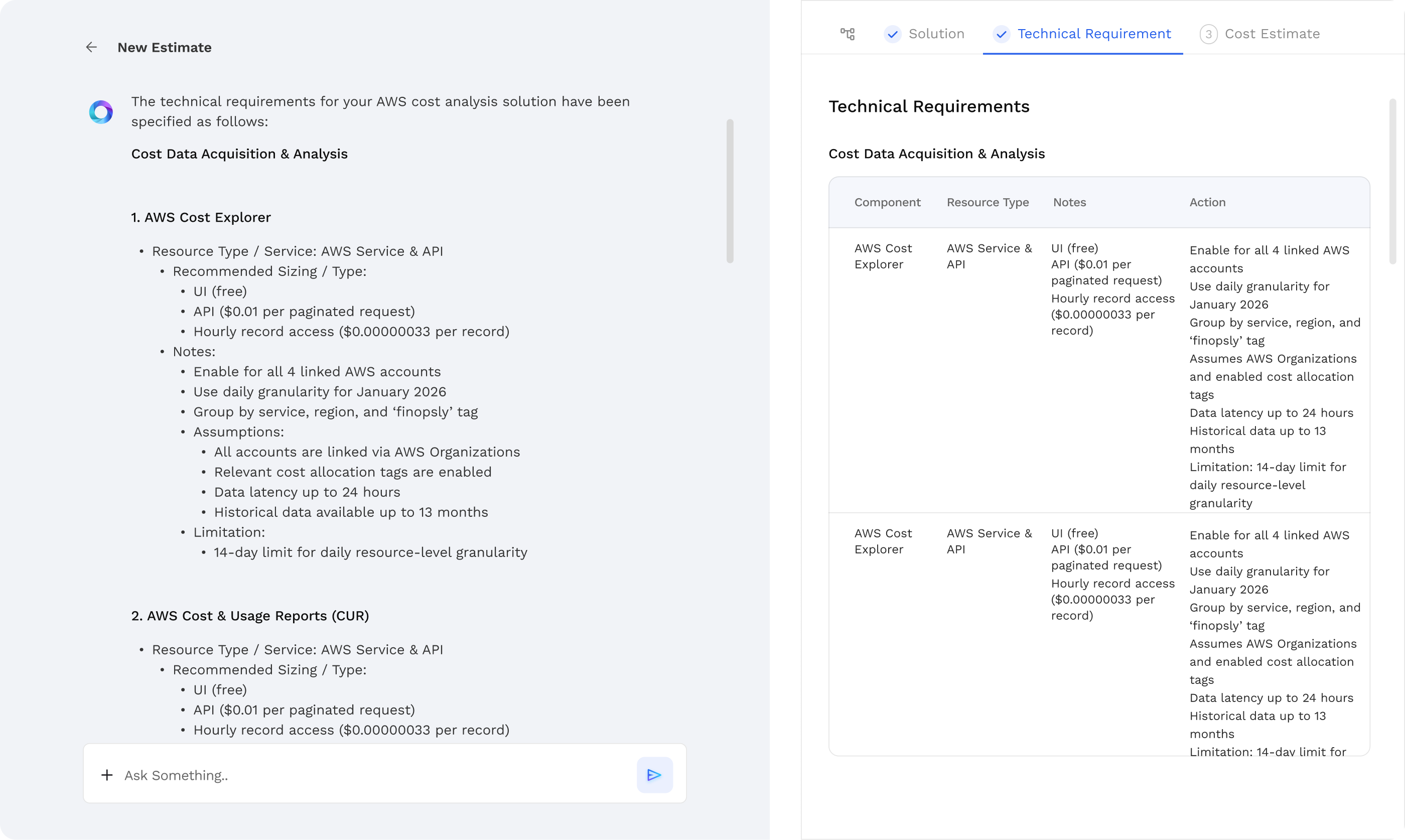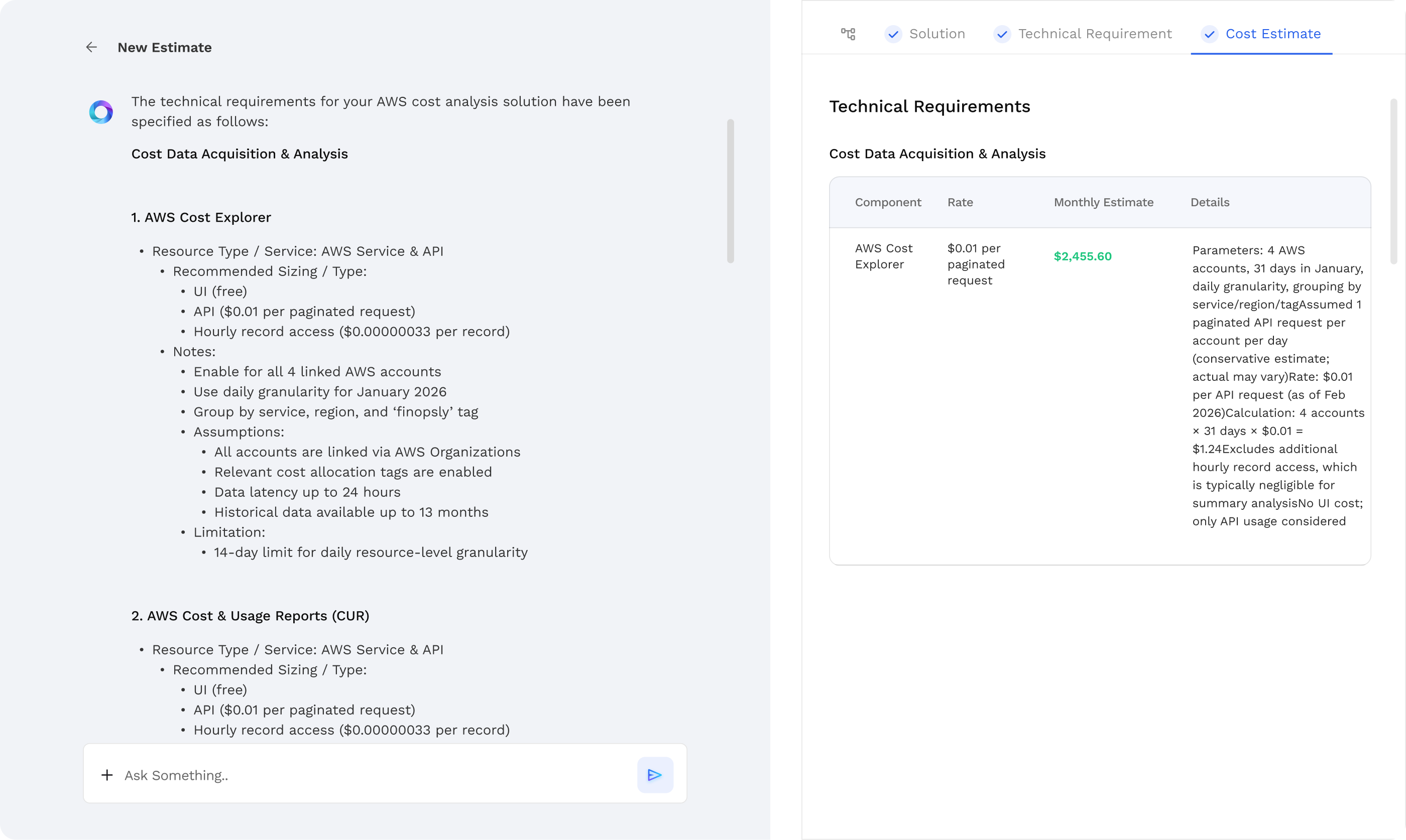 Costix is a conversational, agentic cloud cost estimation engine. It works like a smart architect + FinOps advisor that collaborates with you in real time to create reliable and presentation-ready estimates.